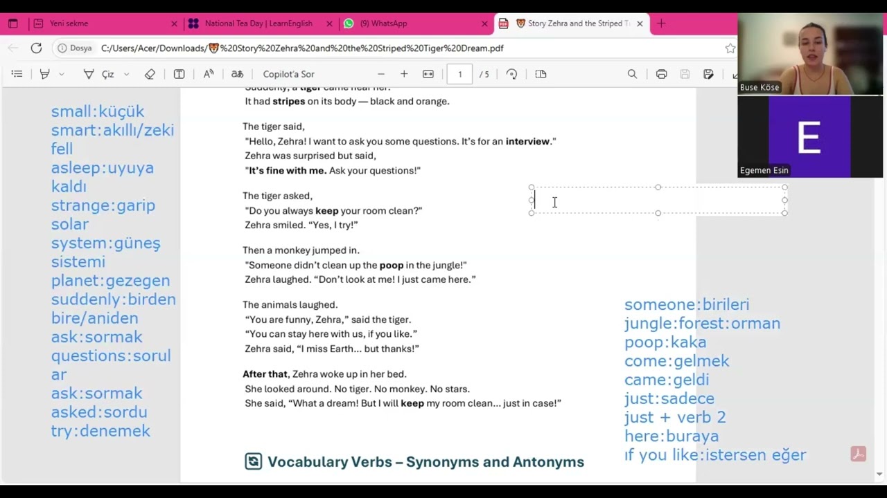 Şuan da Bulgaristan Sofia da öğretmenlik yapmaktayım. Online dersler sonucunda Türkiye’deki öğrencilerimle birlikte çok güzel sonuçlar aldık. Geleneksel öğretim tekniklerinin yanısıra dizi film izlem- animasyon ile öğretim - oyun ile öğretim ile öğrencileri sıkmadan ve eğlendirerek öğretmeyi amaçlıyorum.