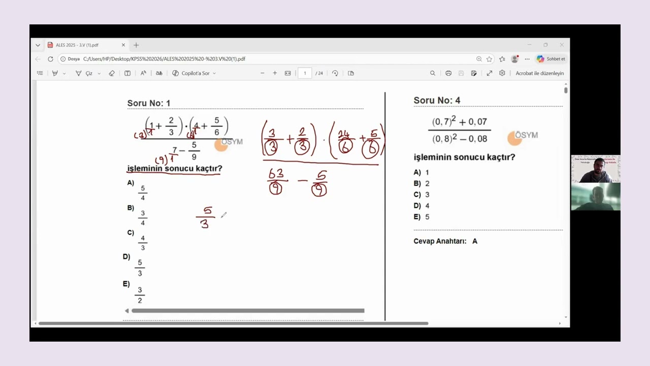 • 🎓 10 yıllık profesyonel tecrübeye sahip bir matematik eğitmeni ve aynı zamanda LGS, YKS, ALES, DGS ve KPSS sınavlarına aktif olarak soru hazırlayan bir soru yazarıyım. Sınav sisteminin sadece görünen yüzünü değil, mutfağını da bilen biri olarak öğrencilerime gerçek sınav bakış açısını kazandırıyorum.